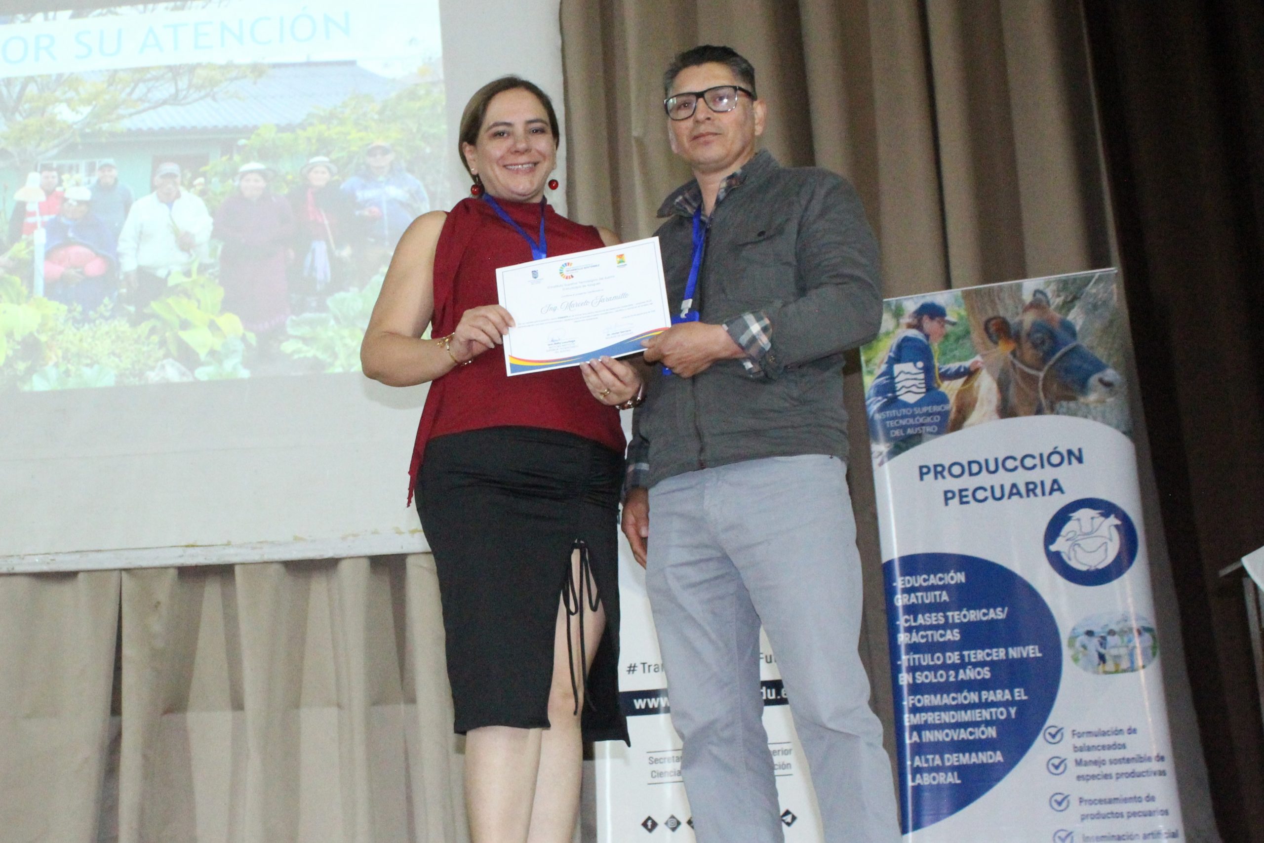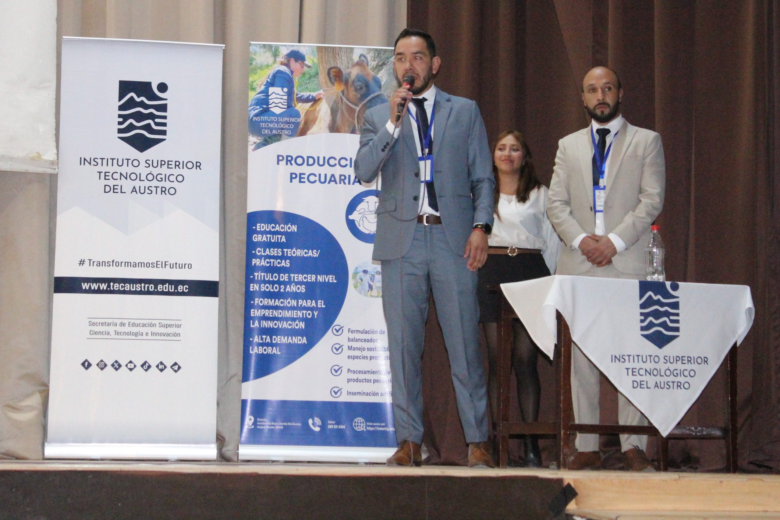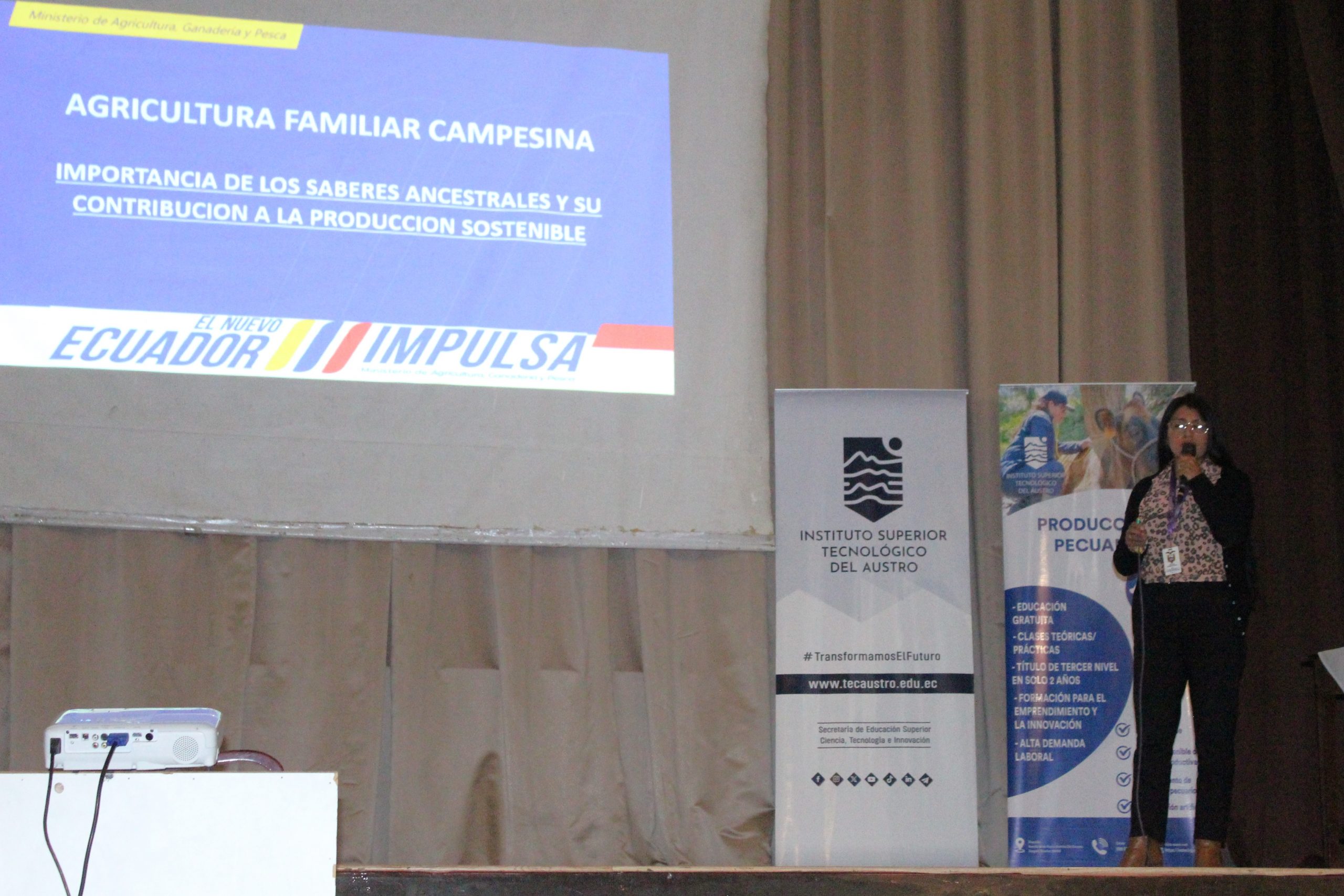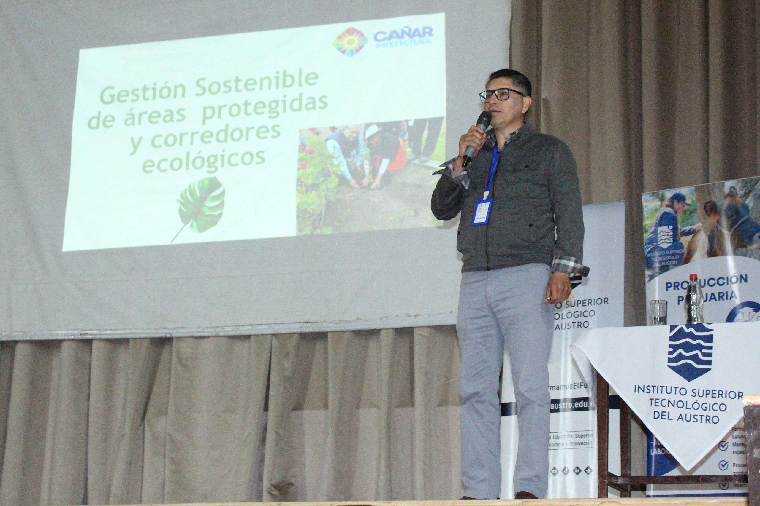 Por su parte, la Dra. Nelly Luzuriaga, Rectora del Instituto Superior Tecnológico del Austro, subrayó el rol fundamental de la educación tecnológica superior en la formación de profesionales comprometidos con la sostenibilidad, “En el IST del Austro concebimos la sostenibilidad como un eje transversal de todas nuestras carreras. Formamos tecnólogos con capacidades técnicas, pero sobre todo con conciencia social y ambiental, porque sabemos que el verdadero progreso solo es posible en armonía con las personas y con la naturaleza. Hoy inauguramos este encuentro con la convicción de que el conocimiento, la investigación aplicada y la innovación son herramientas clave para transformar nuestro territorio”, manifestó la Rectora.