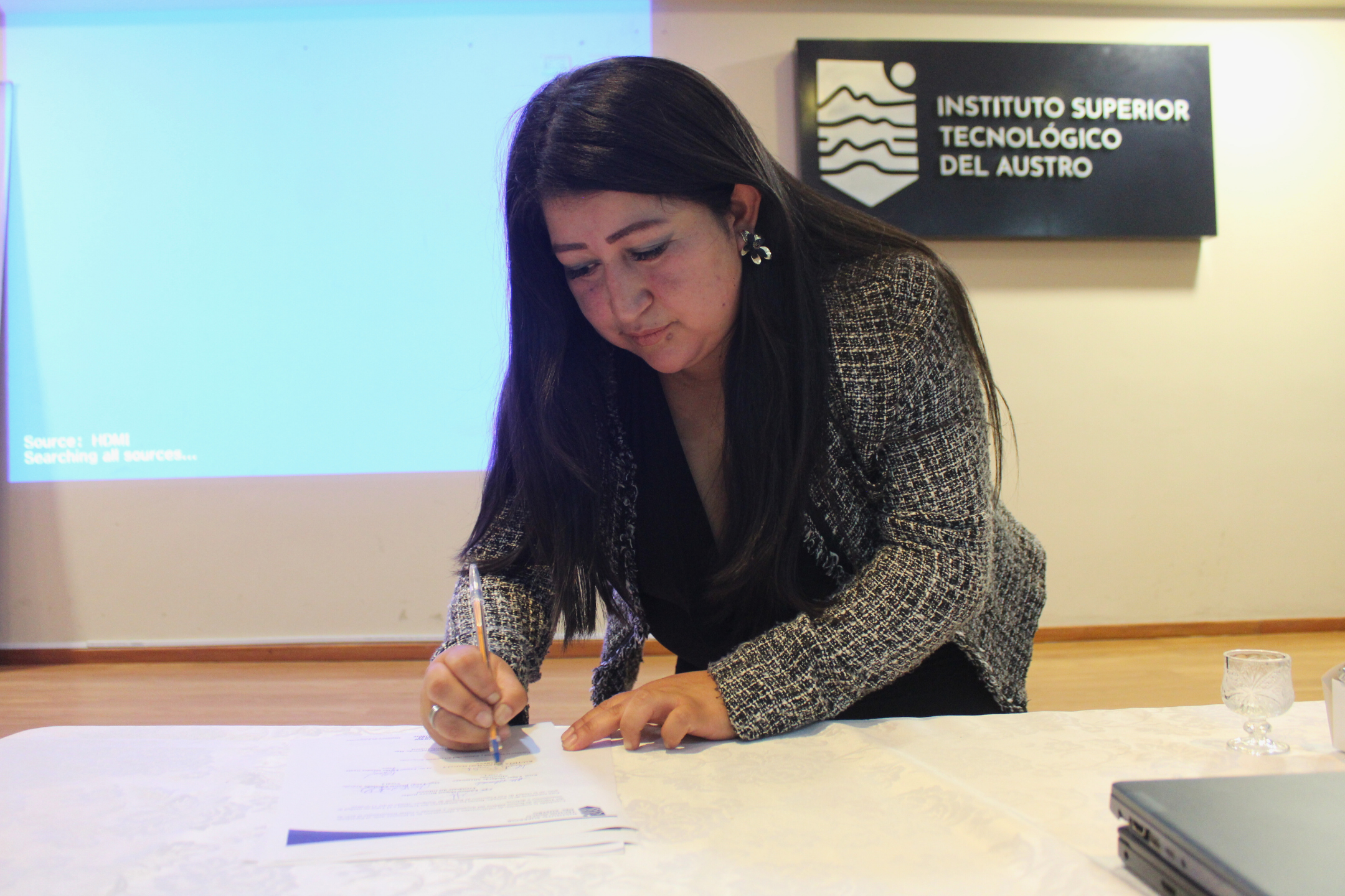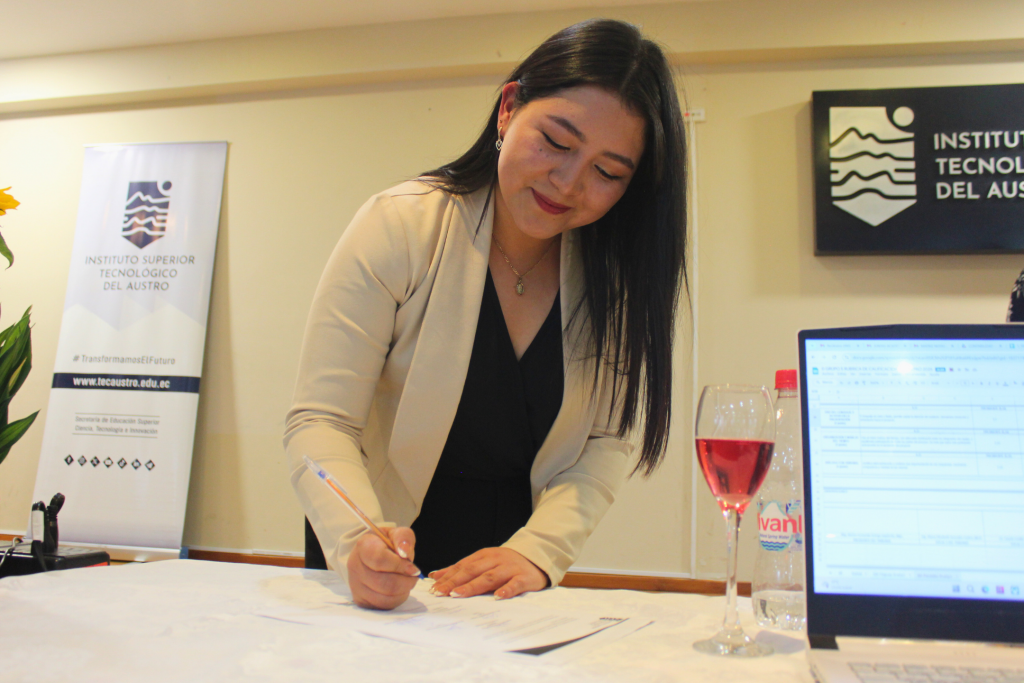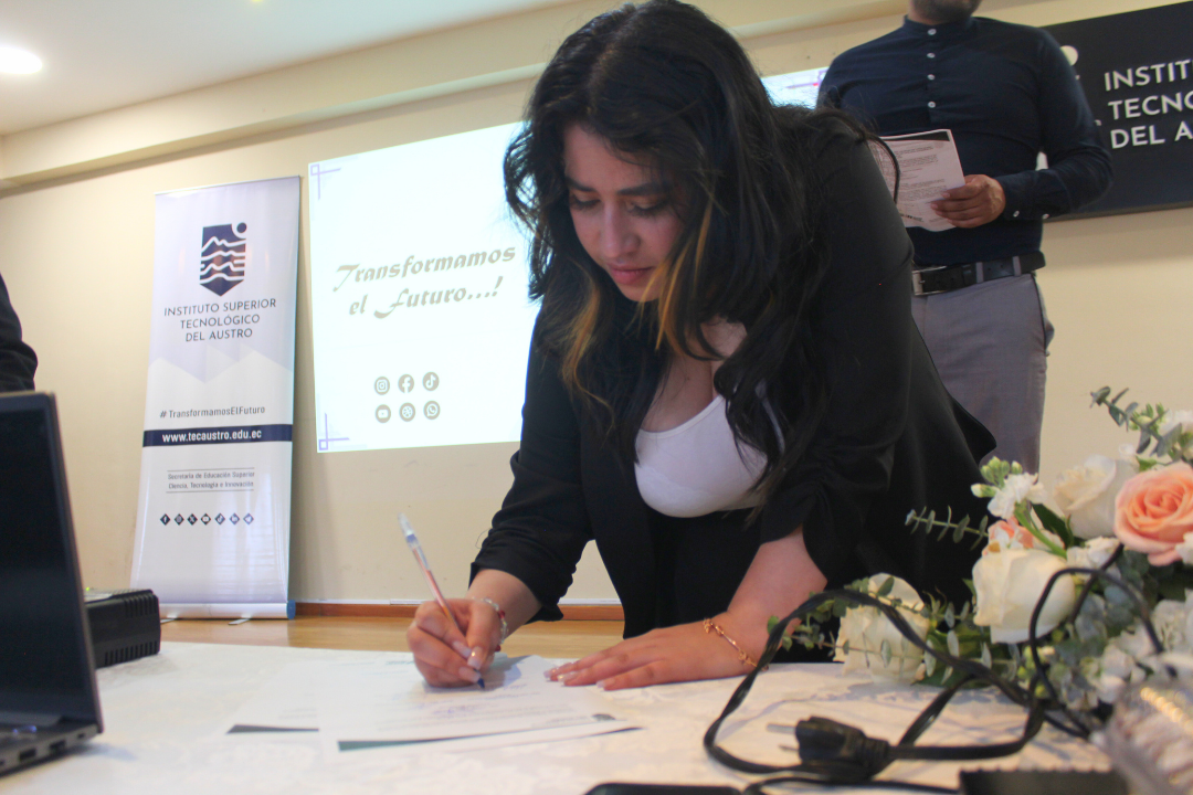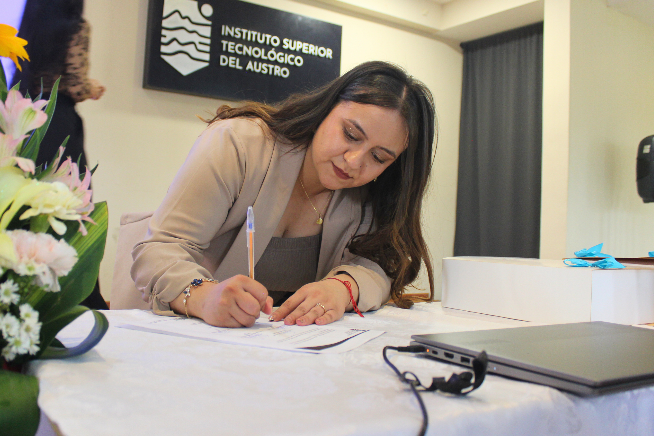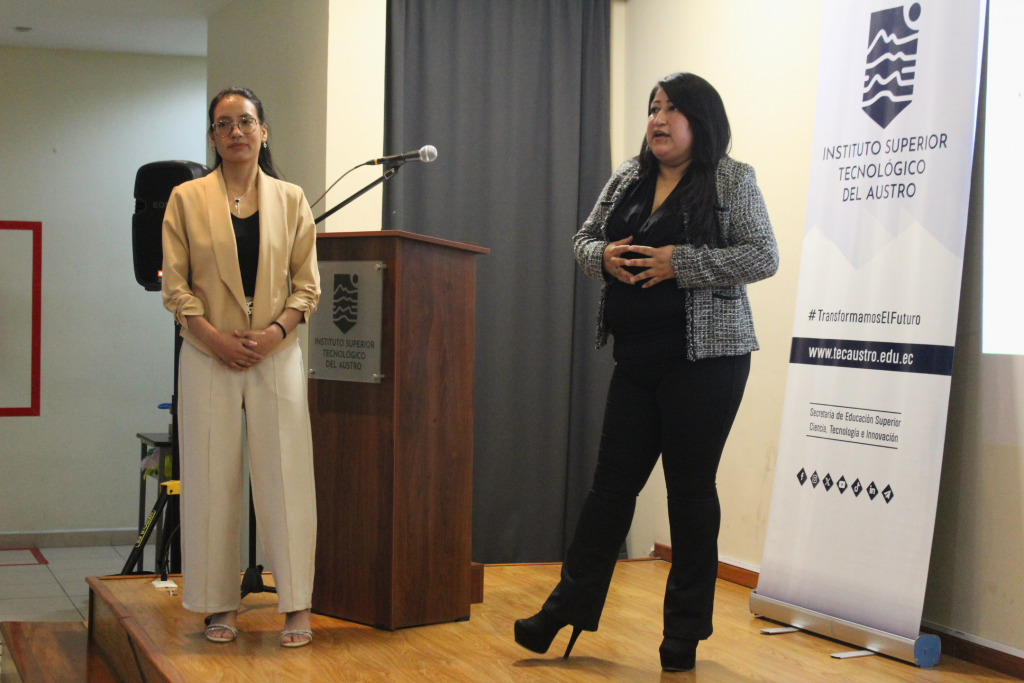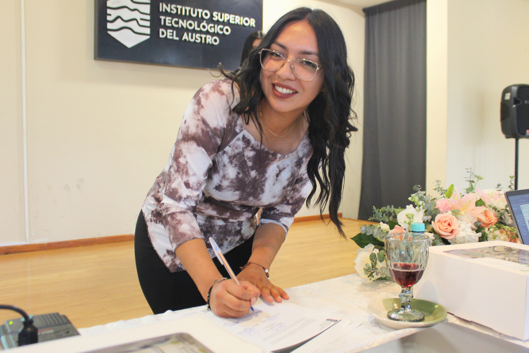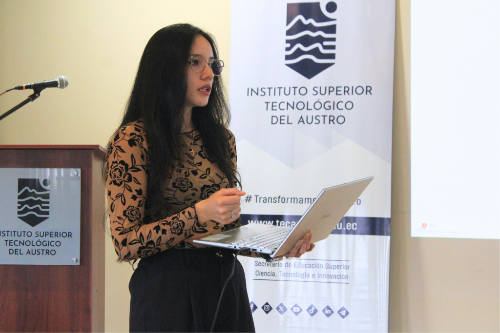 Por su parte, la Dra. Nelly Luzuriaga, Rectora del IST del Austro, enfatizó el impacto de la formación tecnológica superior en el desarrollo local. “Cada trabajo de titulación refleja una educación pertinente, vinculada con las necesidades del entorno. En el IST del Austro formamos tecnólogos capaces de aportar con soluciones responsables, con rigor técnico y con visión de mejora continua para empresas e instituciones”, expresó.