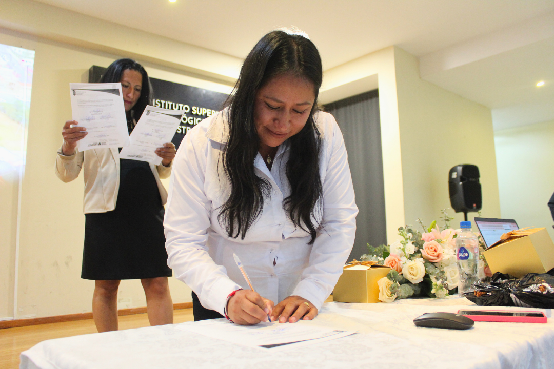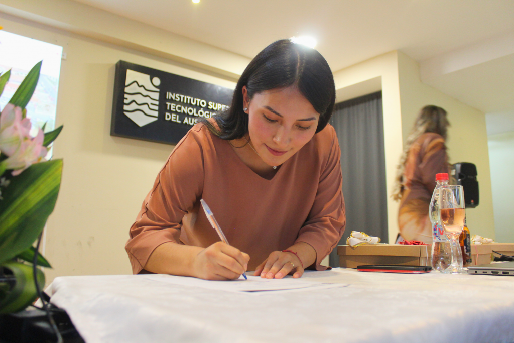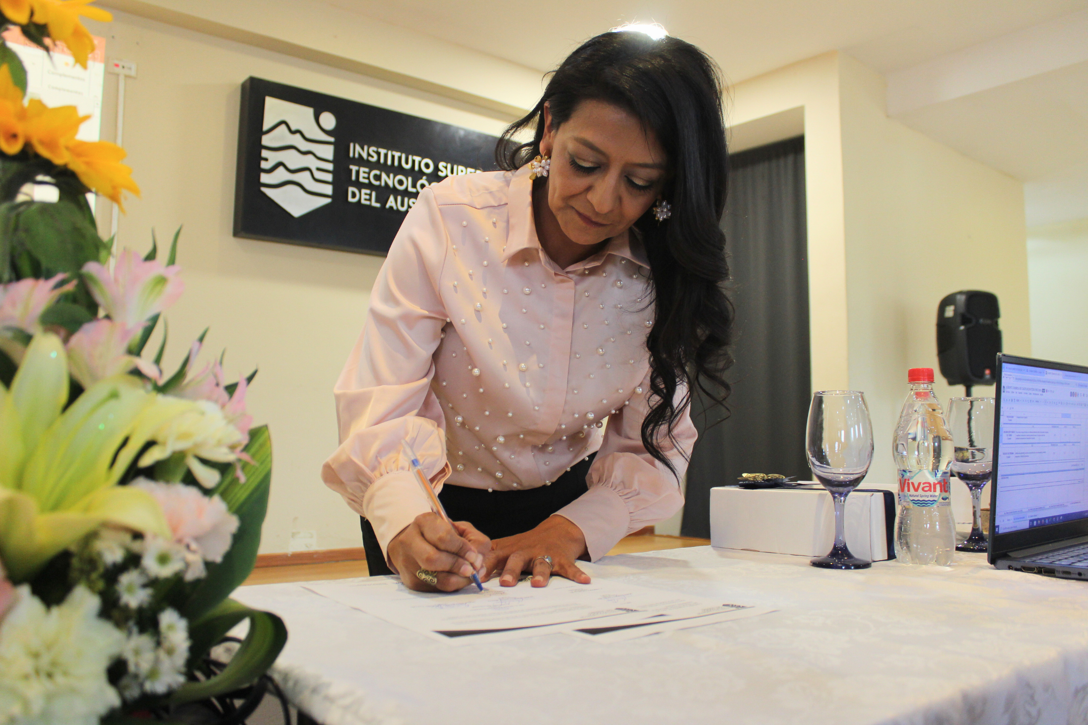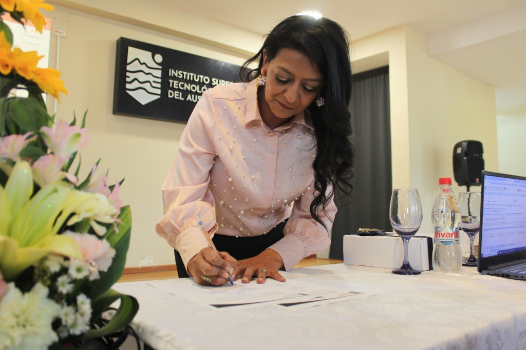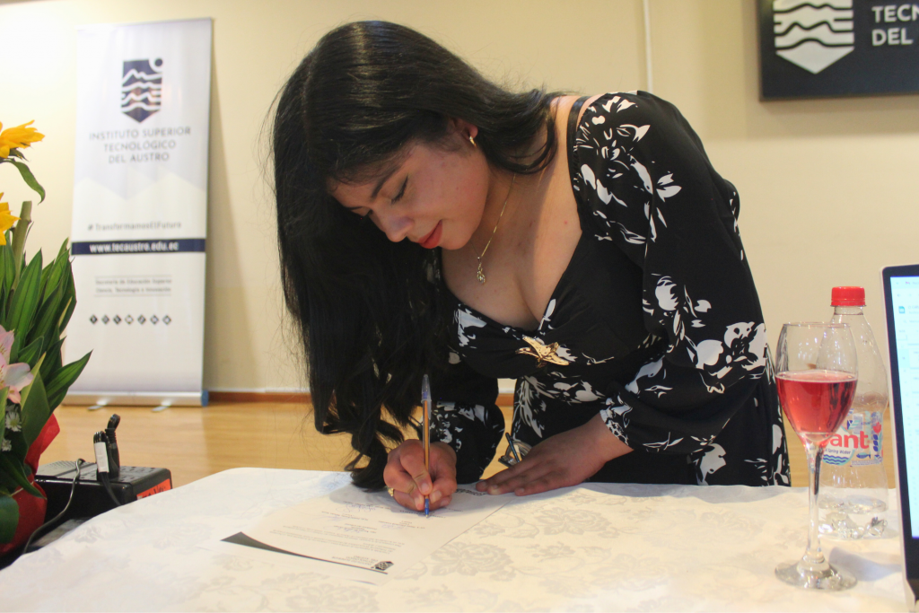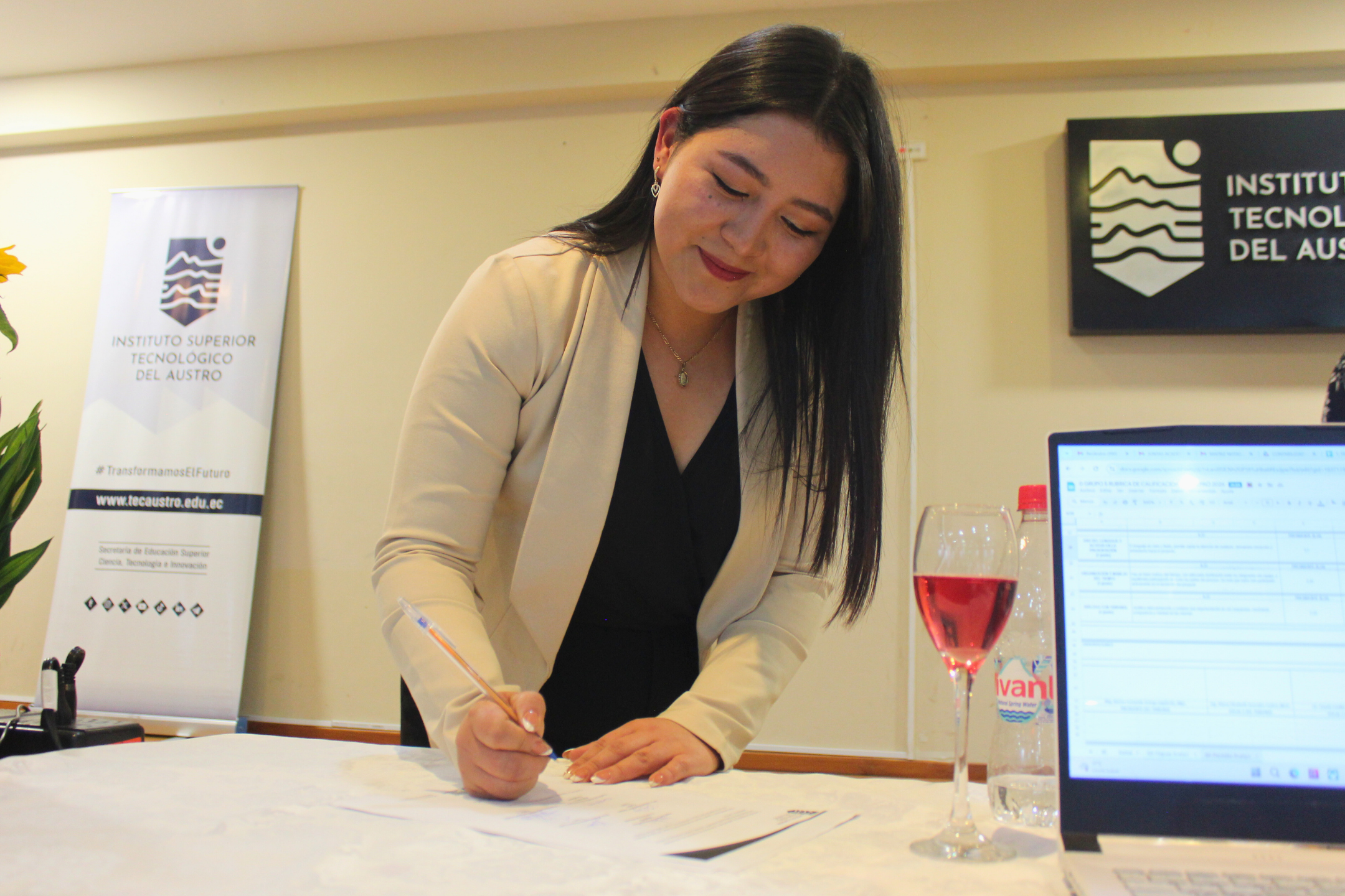 Por su parte, la Dra. Nelly Luzuriaga, Rectora del IST del Austro, enfatizó el impacto de la formación tecnológica superior en el desarrollo local. “Cada trabajo de titulación refleja una educación pertinente, vinculada con las necesidades del entorno. En el IST del Austro formamos tecnólogos capaces de aportar con soluciones responsables, con rigor técnico y con visión de mejora continua para empresas e instituciones”, expresó.