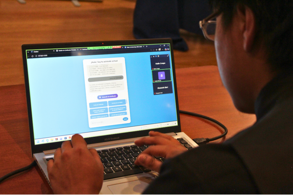 En el bloque central se presentaron tres propuestas tecnológicas desarrolladas por equipos estudiantiles: Sistema web de reconocimiento facial para el Instituto Superior Tecnológico del Austro, presentado por Johnny Efraín Tipantuña Vargas y Edison Santiago Vargas Pila; Sistema web para la gestión de certificados académicos integrado a un chatbot en el IST del Austro, presentado por Erick Xavier Paguay Guallpa y Stalin Sebastián Crespo Naula; y Gestor web para la automatización de contenidos publicitarios para emprendimientos y agencias de marketing de la ciudad de Azogues, presentado por Sandra Elizabeth Sibri Luna y Andrés Sebastián Torres Guamán.