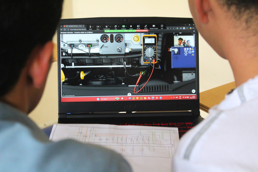 Como parte del proceso, los estudiantes ejecutaron el examen práctico bajo dos modalidades complementarias; un grupo lo rindió en los laboratorios del Instituto, con prácticas de verificación y diagnóstico; mientras que otro grupo lo desarrolló mediante simuladores especializados, alternativa que forma parte de las modalidades de titulación y fortalece la evaluación de competencias en escenarios técnicos de alta exigencia.