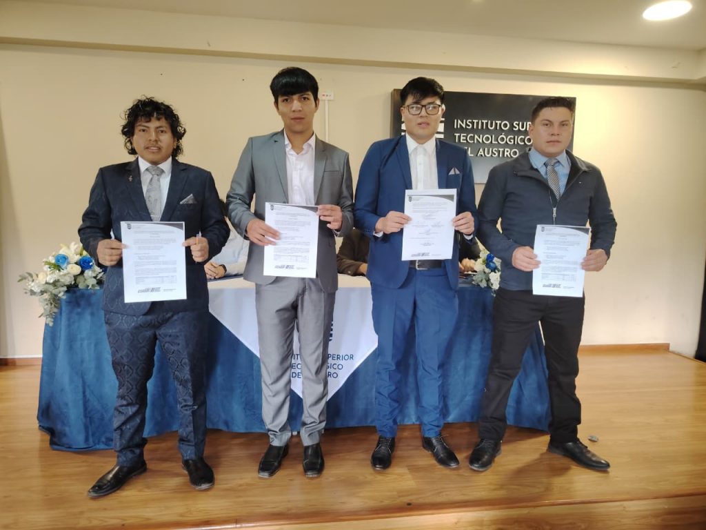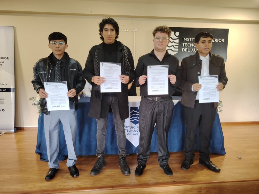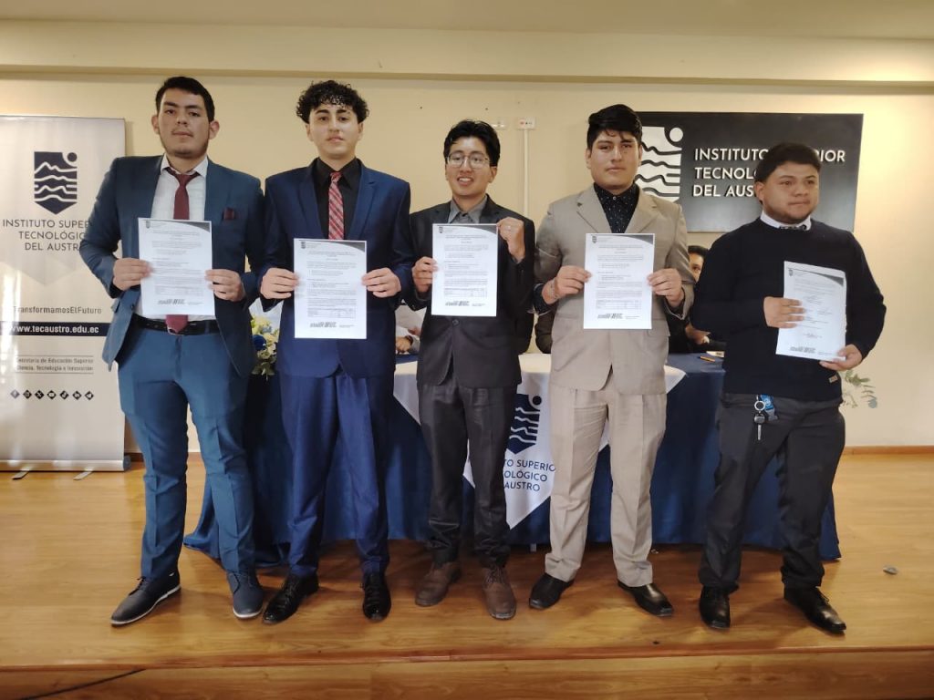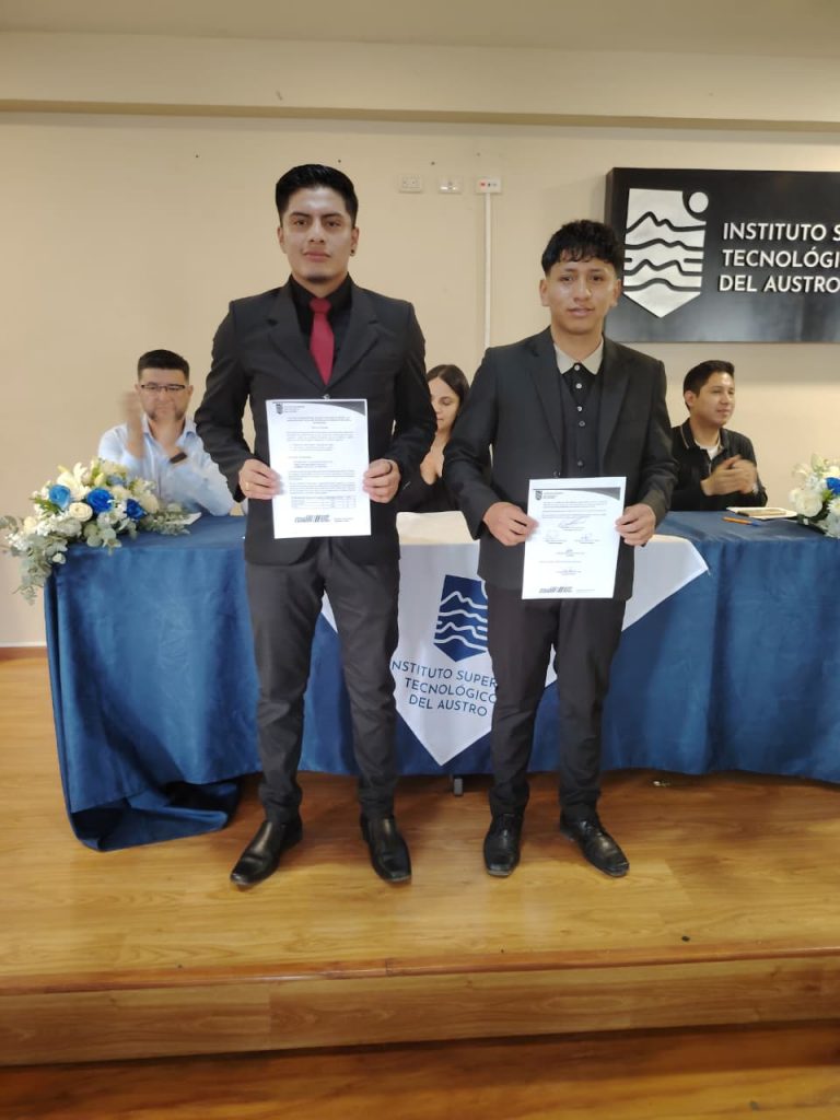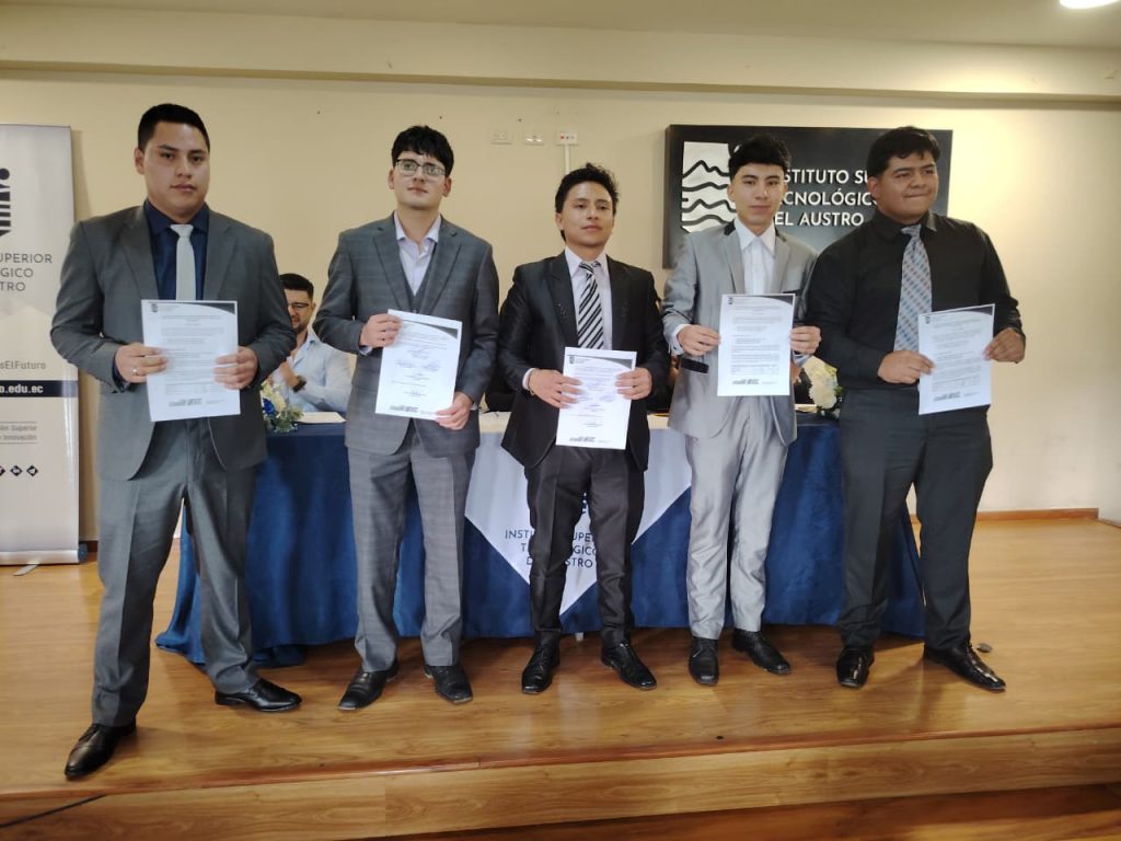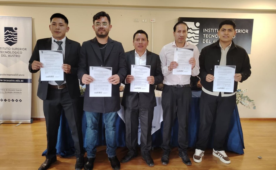 En el auditorio del Instituto Superior Tecnológico del Austro, este jueves 12 de febrero de 2026, se desarrolló el acto formal de firma y entrega de las actas de resultados del examen complexivo rendido por los estudiantes de la carrera de Mecánica Automotriz, como parte de su proceso de titulación de tercer nivel.